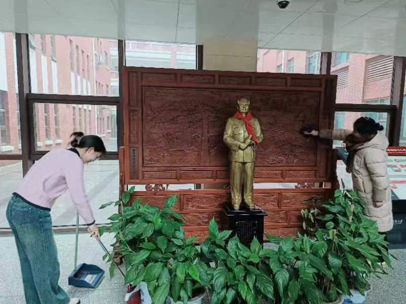 会后,支部党员在中和楼大厅开展了志愿打扫卫生活动,在实践中践行雷锋精神。