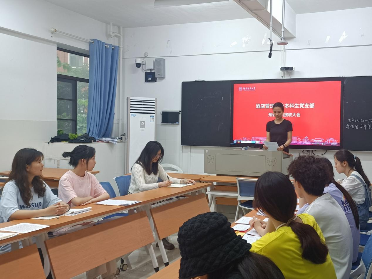 5月11日下午,yl8cc永利官网酒店管理专业本科生党支部在中和楼229室召开预备党员接收大会。支部“第一书记”邱粤湘到会指导,会议由支部书记李蕾主持。