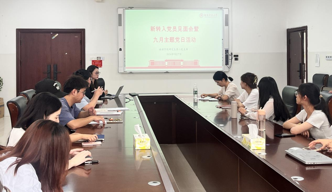9月27日中午,研究生第二党支部在中和楼233会议室举办新转入党员见面会暨九月份主题党日活动。会议由支部书记刘洁主持,支部“第一书记”刘为潍出席。