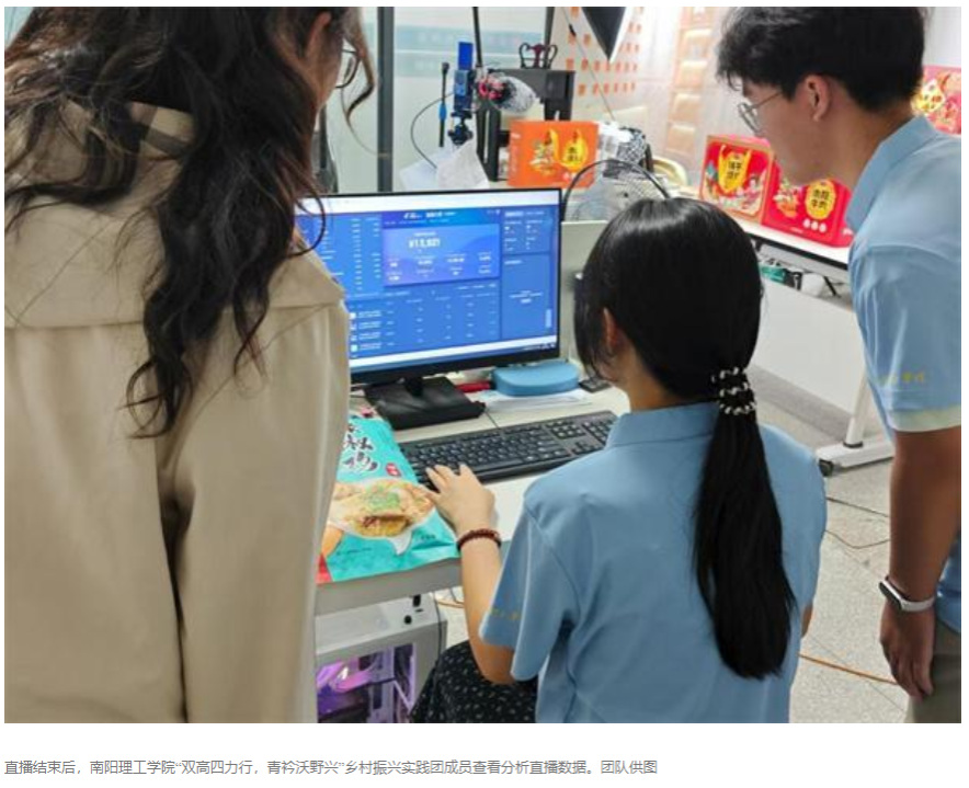 7月初,刚结束调研的南阳理工学院“双高四力行,青衿沃野兴”乡村振兴实践团带着“农村电商发展痛点”回到学校的数字经济产业孵化园,开启助农直播,为河南省南阳市镇平县特色产品风干椒麻鸡拓展销路。