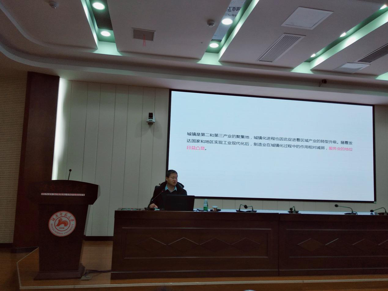 (通讯员 李倩)12月21日晚,首都师范大学申玉铭教授应邀来yl8cc永利官网讲座,在中和楼234报告厅作题为“服务业地理研究进展”的学术讲座。讲座由院长王兆峰教授主持。