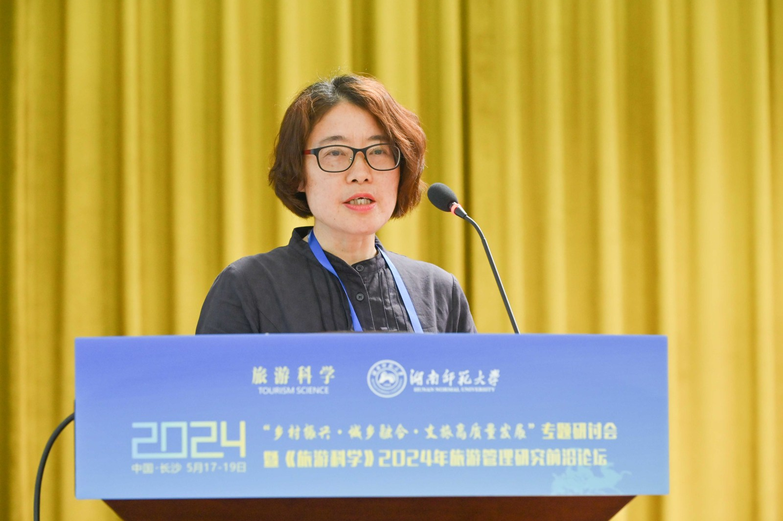 上海旅游高等专科学校副校长、上海师范大学旅游学院副院长、《旅游科学》主编张宏梅教授到会致辞,她解读了《旅游科学》“创新·绿色·幸福”的主旨内涵,并阐释其与本次会议主题的高度契合性,表达对旅游研究的使命和文旅高质量融合发展的愿景。