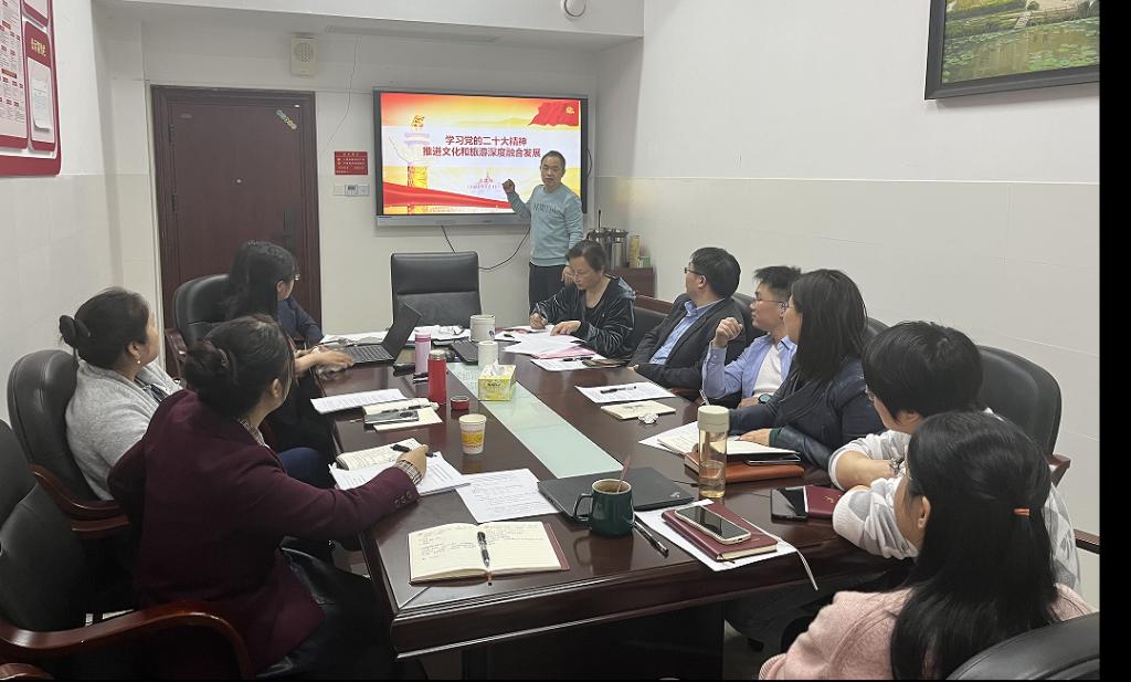 此次党课学习由支部书记唐健雄主讲,依据“贯彻党的二十大精神,凝聚奋进新征程伟力”的活动主题,他讲授的党课主题为《学习党的二十大精神,推进文化和旅游深度融合发展》。课上,唐健雄以习近平总书记的重要讲话精神 “文化产业和旅游产业密不可分,要坚持以文塑旅、以旅彰文,推动文化和旅游融合发展,让人们在领略自然之美中感悟文化之美、陶冶心灵之美”为开篇;再具体从“中国式现代化与文旅融合”、“贯彻党的二十大精神、擦亮‘锦绣潇湘’品牌”等方面展开论述,并提出了文旅融合可向红色旅游、文博旅游、非遗旅游、旅游演艺、文化景区、特色文旅小镇、历史文化名村名镇街区、工业旅游、主题公园、主题酒店与民宿等十大方向突破。最后,他希望支部党员在今后工作中不断加强学习,不断从党的二十大精神中汲取奋进力量。